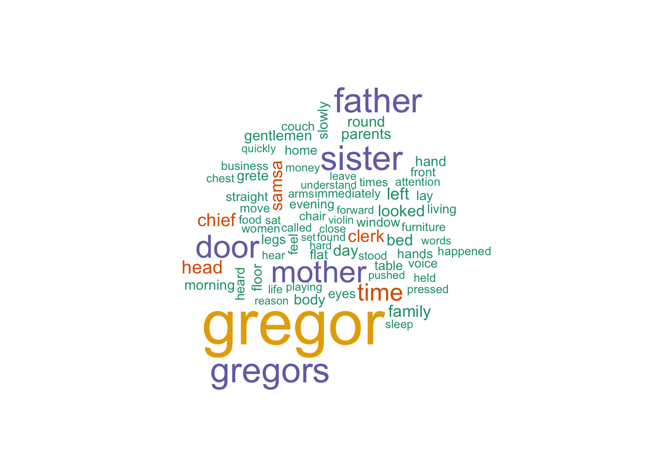 Before we go any further, we first need to set up our workspace. We will primarily be working with tidytext to keep ourselves in the tidyverse and will be pulling data from gutenbergr, which is a repository of free classic texts. Let’s start by loading in our data, Metamorphosis by Kafka, and unnesting it into tokens.