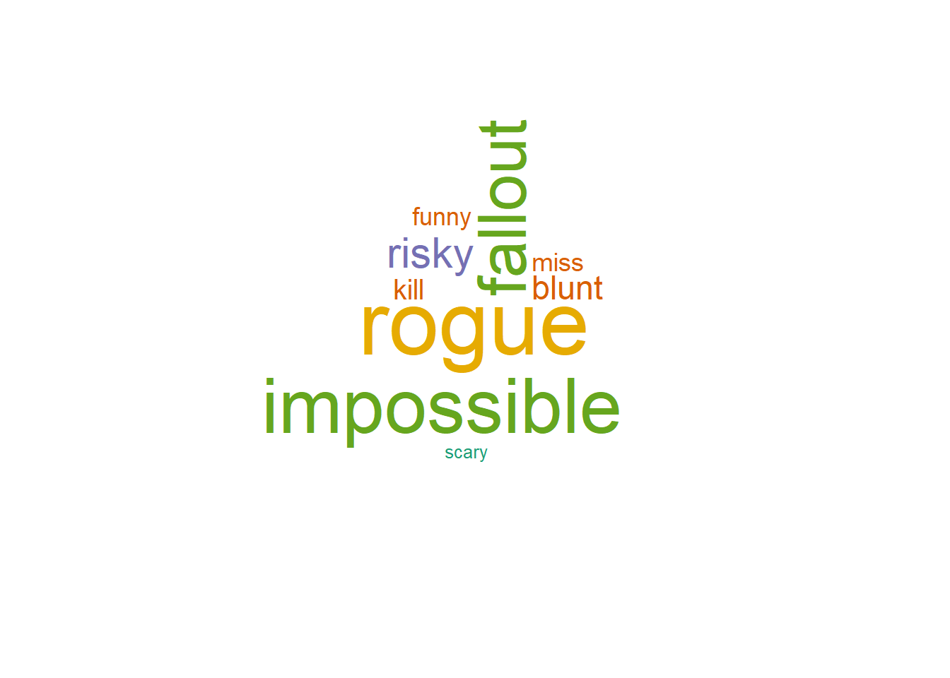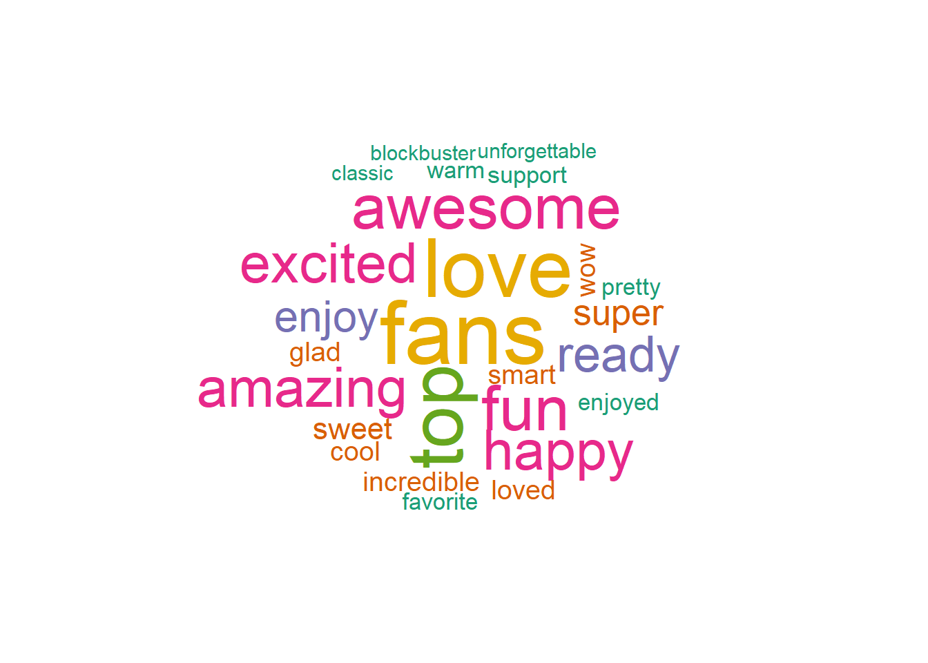 As you can see, Tom Cruise is a pretty positive guy. He pretty much only tweets positive words. In fact, a few of the most prominent words in his negative word cloud are from the names of his Mission Impossible movies.